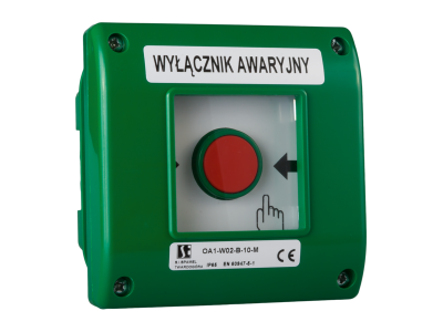 Ręczny przycisk OA1 przeznaczony jest do stosowania w miejscach gdzie wymagane jest awaryjne sterowanie ręczne. Przykładowym zastosowaniem mogą być przejścia ewakuacyjne, które w sytuacji zagrożenia muszą zostać awaryjnie otwarte przez zbicie szybki. OA1 może być również użyty w obszarach gdzie w przypadku niebezpieczeństwa wymagane jest odłączenie zasilania przez trwałe uszkodzenie elementu kruchego. OA1 oferowany jest w dwóch wykonaniach, typ A i typ B. Typ A w sytuacji alarmowej wymaga tylko zbicia szybki co spowoduje zwolnienie przycisku. Dla typu B po zbiciu szybki należy wcisnąć przycisk z samoczynnym powrotem. OA1 ze względu na sposób mocowania występuje w obudowie natynkowej i podtynkowej. W każdej obudowie mogą być zainstalowane maksymalnie trzy łączniki SP22-10 (zwierny) lub SP22-01 (rozwierny). Uruchomienie i wysłanie sygnału następuje przez zbicie szybki (typ A) lub po zbiciu szybki i wciśnięciu przycisku z samoczynnym powrotem (typ B)