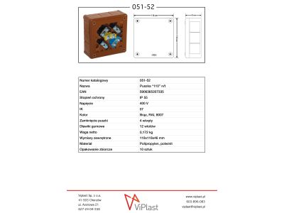 Puszka n/t 118x118x46 IP55 12-wl dł.gum. z zaciskiem brąz, VP-51 | 051-52 Viplast