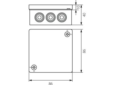 Puszka n/t 86x86x40mm IP55 12-wl 2wkr Osłabienia do dławnic z gwintem z zac popiel VP 023-53 długość 86mm x szerokość 86mm x wysokość 40mm. Waga 0,088kg