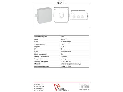 Puszka n/t V7 100x100x41mm IP54 12-wl. Klik z osłab. biała elastyczna | 037-01 Viplast