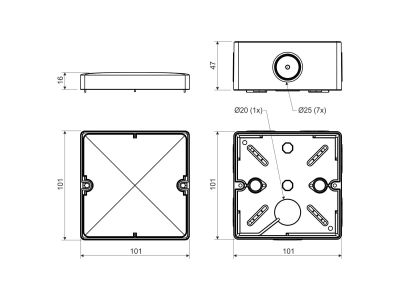 Alternatywny kod produktu: KSK 100_FASkrzynka do trudnych miejsc - stopień ochrony IP 66. Skrzynka posiada wejścia uszczelnione membranami, pokrywa mocowana za pomocą stalowych śrub. Kolor czarny. Spełniają one wymagania dotyczące palności materiałów klasy A - F .Puszka ze stopniem szczelności IP 66 przeznaczona jest do montażu w przestrzeni ach wewnętrznych i zewnętrznych o wysokiej wilgotności. Puszka mocowana jest na powierzchni (ściana, sufit) przy pomocy dwóch wkrętów, które podczas montażu przechodzą przez miękkie uszczelnienie nie naruszając stopnia szczelności. Wpusty dla kabli wyposażone są w materiał elastyczny - membranę, która po wprowadzeniu kabla uszczelnia otwór wlotowy. Przy usuwaniu całej membrany można zastosować rurkę elektroinstalacyjną o średnicy 20 mm albo przepust z nakrętką M 20. Opakowanie zawiera także 2 szt. wkrętów dla zamocowania pokrywy puszki. Napięcie nominalne: 400 V Zakres temperatur pracy: T-25 - 60 °C
