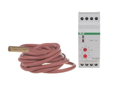 Regulator temperatury RT-823 zakres temp. 60-95st.C montaż na szynie DIN styk 1NO/NC 230V AC | RT-823 F&F