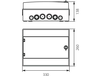 Rozdzielnica Hermetyczna RH-12S, kolor: szary, drzwi: transparentne, IP65, 500VAC, 1000VDC,szerokość:330mm,wysokość:260mm