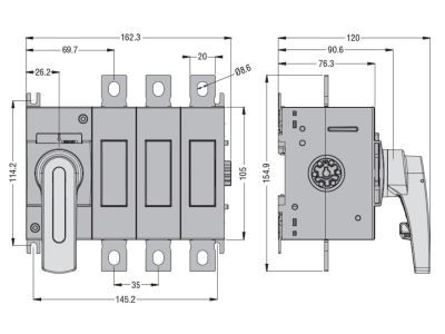 Rozłącznik izolacyjny 3P 315A bez pokrętła (Ith/AC21A), 250A (Ie/AC22A i AC23A) | GL0315C1 Lovato Electric