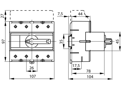 Rozłącznik izolacyjny 4-biegunowy, 125A, z pokrętłem na rozłączniku | RSI-4125\W02 Spamel