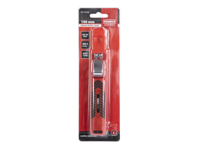 Dostosuj głębokość cięcia za pomocą śruby regulacyjnej na końcu narzędzia, tak aby naciąć jedynie warstwę izolacji. Umieść kabel w uchwycie ze wsparciem samonapinającego przytrzymywacza, a następnie wykonaj cięcie okrągłe lub podłużne za pomocą obrotowego noża wewnętrznego. W przypadku grubszych kabli użyj ostrza prostego do nacinania płaszcza, a ostrza hakowego do bezpiecznego jego zdjęcia. Po zakończeniu pracy załóż kaptur ochronny na ostrze, aby zabezpieczyć narzędzie.