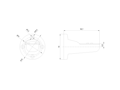 Alternatywny kod produktu: 8WD46180CAkątownik do mocowania ściennego do montażu jednostronnego, bez stopy i rury, akcesoria do elektronicznie konfigurowalnych kolumn sygnalizacyjnych, o średnicy 70 mm, IP66/69k