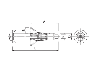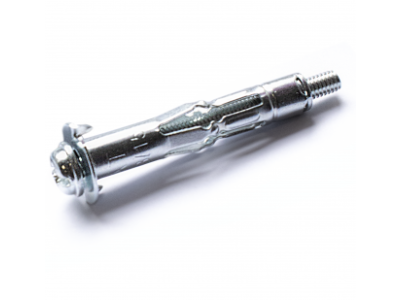 Wywierć otwór o zalecanej średnicy w płycie g-k lub OSB. Umieść łącznik w otworze i dobij lekko, aby skrzydełka antyrotacyjne schowały się w podłożu. Następnie za pomocą odpowiedniego narzędzia (śrubokręta lub osadzaka) rozpręż łącznik w płycie. Wkręć dołączoną śrubę przez element mocowany.
