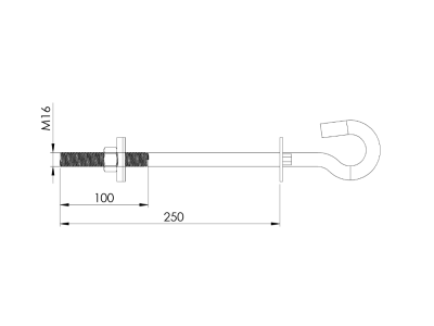 Pręt stalowy S235: podkładki kwadratowe, nakrętka M16.Cynkowane ogniowo. Gwinty na śrubach hakowych są walcowane.