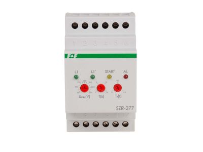Stopień ochrony IP20 Jednofazowy sterownik załączania rezerwy SZR-277 służy do kontroli napięcia jednofazowej sieci zasilającej i przełączenia linii odbiorczej na zasilanie z generatora w przypadku nieprawidłowych parametrów głównej linii zasilającej.