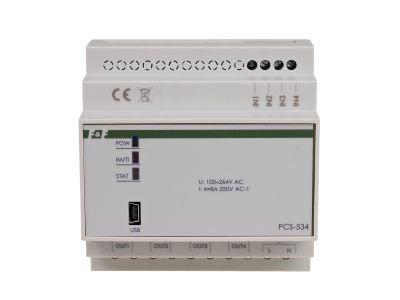 Sterownik PCS-534 przeznaczony jest do układów automatyki, w których zachodzi potrzeba jednoczesnego sterowania grupą odbiorników w ustalonej kombinacji ON/OFF wymuszanej kolejnymi impulsami podawanymi ręcznie lub automatycznie na wejście sterujące lub zgodnie z czasowymi interwałami między kolejnymi przełączeniami.
