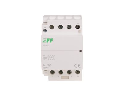 Stopień ochrony IP20 Stycznik modułowy. Prąd 63 A. Napięcie 230 V AC. Moc łączeniowa AC1 24 kW. Moc łączeniowa AC3 8,5 kW.