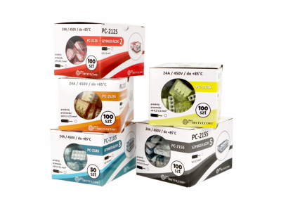 Szybkozłączka mini PC-213S, 3-torowa drut, 0,2-2,5mm2, 24A, 450V (opak=100szt)