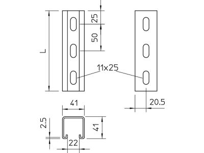 Szyna profilowa boczna perforacja, szczelina 22 41x41, St, FT MSL4141PP1000FT (1m) | 1123001 Obo Bettermann