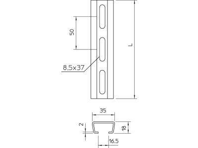 Szyna profilowa perforowana 35x18, V2A, A2, stal nierdzena AMS3518P2000A2 (2m)