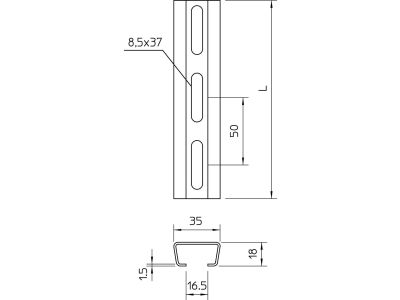 Szyna profilowa perforowana, szerokość szczeliny 16,5mm 500x35x18, St, FT AML3518P0500FT