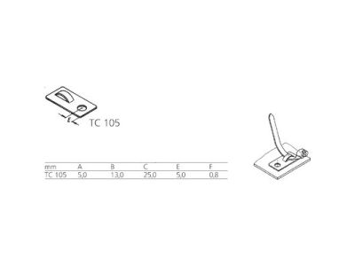 Uchwyt do opasek kablowych TIE MOUNTING SOCKET TC 105 ALUMINIUM; Uchwyt do opasek kablowych; dla szerokości opaski kablowej: 4.8mm; metal; Aluminium; Bezhalogenowy; Odporność UV; Anwendungsgebiete: Elementy mocowania dla opasek kablowych; Nutzen: Odporność na wysokie temperatury;Niska wysokość i waga;Odporność na starzenie;Dostosowuje kształt do krzywizny powierzchni montażowej
