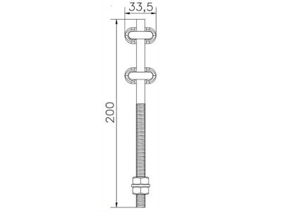 Uchwyt posiada ocynk elektrolityczny w kolorze złotym oraz dodatkowe uszczelnienie powłoki polimerem. Różne długości - w tym również do przejścia przez tzw. fajermurki”. Przy wszystkich długościach częśćgwintowana jest jednakowa - 11 cm. W uchwycie kabłąkowym docisk czterema nakrętkami M8. Gwinty śrub wykonane są metodą walcowania. Stosowane głównie w instalacjach naciągowych w połączeniu z kotwą. Przy długich naciągach należy stosować śruby z dwóch stron lub śrubę rzymską. Okres gwarancji wynosi 3 lata.