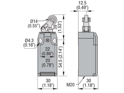 Wyłącznik krańcowy 10A, dźwignia z rolką metalową, IP65