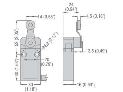 Wyłącznik krańcowy, dźwignia uchylna z rolką
