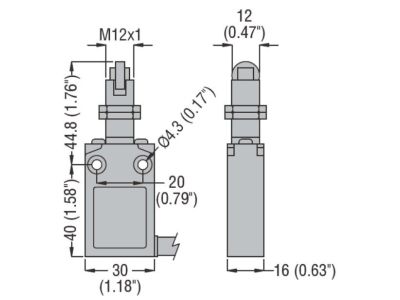 Wyłącznik krańcowy, trzpień wciskany z rolką, M12