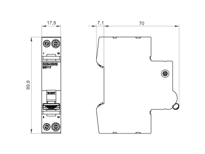 Alternatywny kod produktu: 5SY17024wyłącznik ochronny aparatowy 1-bieg. z pomocniczym wyłącznikiem prądu, zestyk zwierny charakterystyka F2 2 A AC 230 V 50/60 Hz DC 60 V Icn 3kA AC według IEC 60934