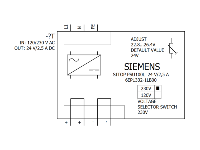 Zasilacz uniwersalny, stabilizowany 120/230VAC, 24VDC, 2,5A, 60W, SITOP LITE PSU100L,