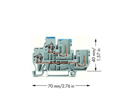 Złączka 1-Przewodowa/1-Pinow dwupiętrowa, złączka przelotowa/przelotowa, szara | 870-103 Wago