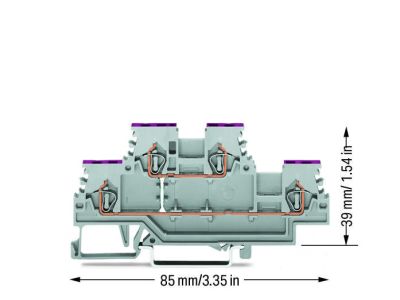 Złączka 2-piętrowa 4-przewodowa Złączka przelotowa, szara | 279-508 Wago