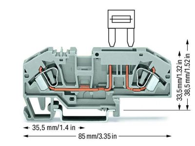 Złączka 2-przewodowa, do bezpieczników samochodowych, 6mm, szara, bez sygnalizacji przepalenia | 282-696 Wago