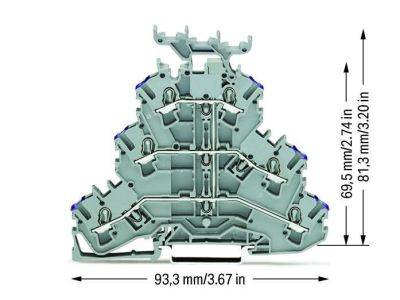 Złączka 3-piętrowa 6-przewodowa Złączka przelotowa, szara | 2002-3238 Wago