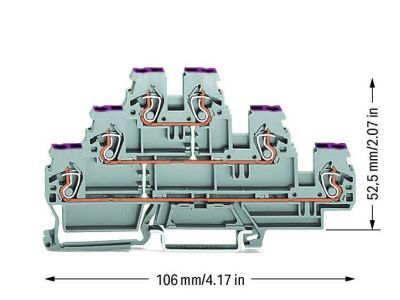 Złączka 3-piętrowa 6-przewodowa Złączka przelotowa, szara | 870-556 Wago