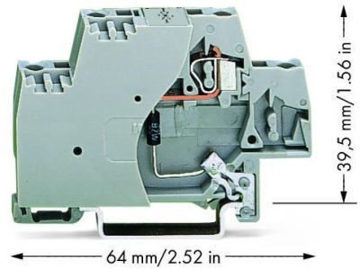 Złączka do zabudowy elementów 2-piętrowa ze ścianką końc. i bezpośr. połącz. z TS, szara | 280-502/281-592 Wago