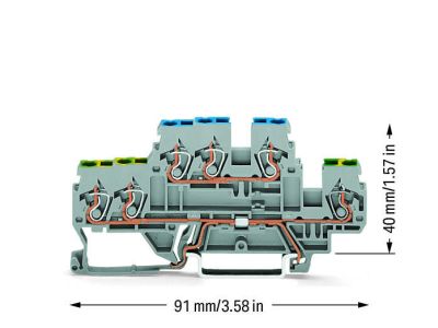 Złączka dwupiętrowa 3-przewodowa, szara | 870-535 Wago
